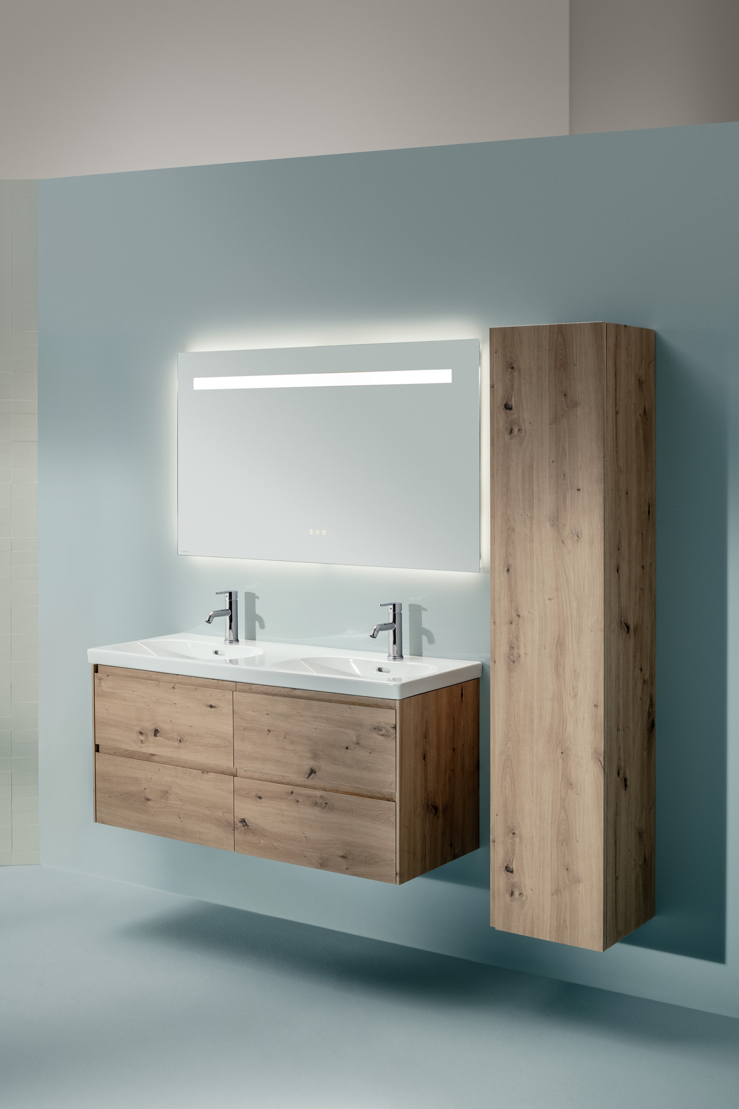 LUA è una collezione estremamente eclettica: i lavabi, ad esempio, sono molto capienti e sono disponibili in composizioni con eleganti mobili e cassetti. Un elemento chiave è rappresentato dai lavabi rettangolari disponibili nelle diverse configurazioni, dalla piccola dimensione di lavamani fino alla soluzione con doppi lavandini. Possono essere sospesi a parete o da appoggio. Il lavabo è predisposto con dei fori per permettere l’eventuale fissaggio di un portasciugamani evitando in questo modo di dover forare il muro e le piastrelle.
